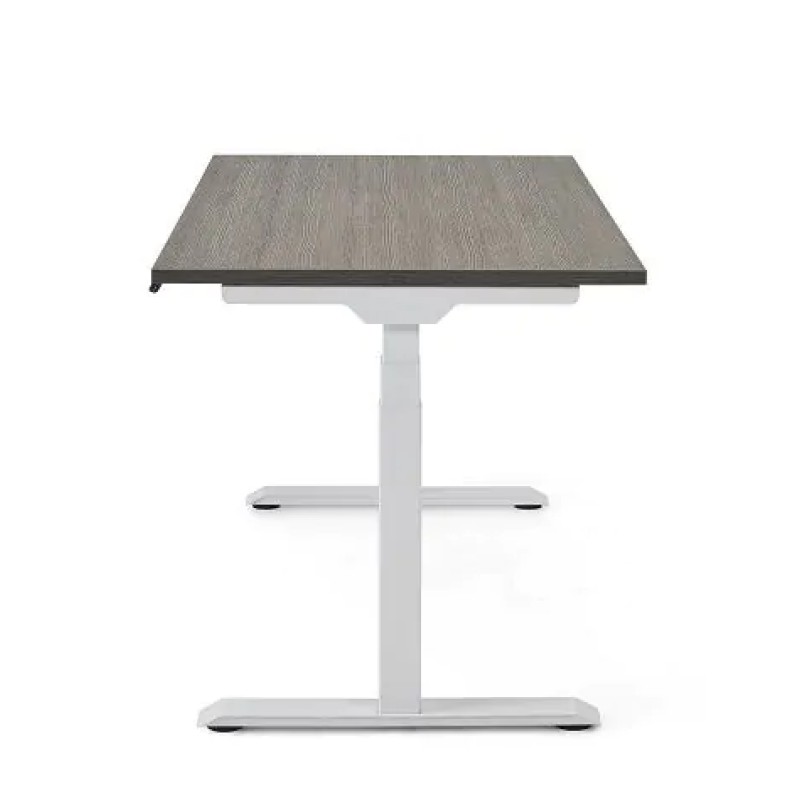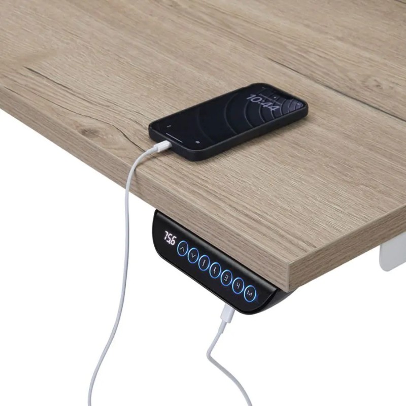 Het in hoogte instelbare bureau (65 cm -130 cm) heeft een botsbeveiliging (anti-collision) waardoor die nooit ergens tegenaan botst. Bijvoorbeeld een computer die onder het bureau staat. Daarnaast is de motor stil zodat je anderen niet stoort. Het versnellen gaat daarentegen juist heel snel met een snelheid van 38 mm per seconde.